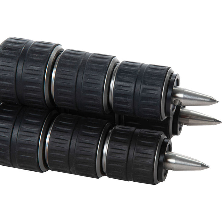 The 4-section legs extend to create a high maximum working height of 55.5" and fold to a compact 6.3", suitable for carrying in a large camera bag or backpack. Three leg angle selections can be made to settle the tripod on uneven terrain and allow for super low-angle shooting from a height of 6.3" when the legs are splayed out. The included rubber feet and metal spikes allow for ultimate traction on any surface.