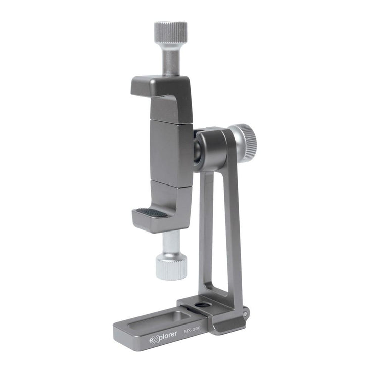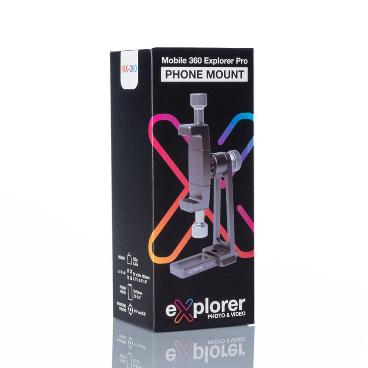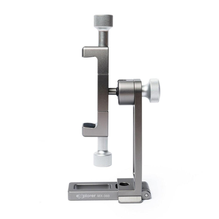 The Explorer MX-360 Mobile 360 Explorer Pro with Tripod Mount and Arca Dovetail is a professional mount specially designed for mobile devices. With all Aluminium Alloy Construction, the Mobile 360 easily allows Landscape and Portrait orientation using the 360° Rotatable Ball Head. A mobile phone can be rotated freely for different angles and easily switch between horizontal and vertical shooting.