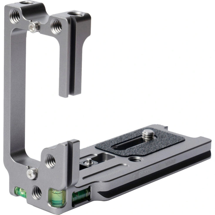The Explorer VX-R5 is a custom-designed L bracket, allowing you to quickly switch between horizontal and vertical mounting positions while keeping a centre of balance through the middle of your tripod. This single-piece CNC machined aluminium alloy bracket is anodised for durability and weighs only 111g (3.9oz). It mounts to your camera via UNC1/4"-20 screw, with convex edges, anti-slip plate, and dual safety stops to minimise lateral movement and prevent your camera from sliding out of a compatible quick release clamp. The VX-R5 is compatible with Arca-type and Really Right Stuff lever clamps.