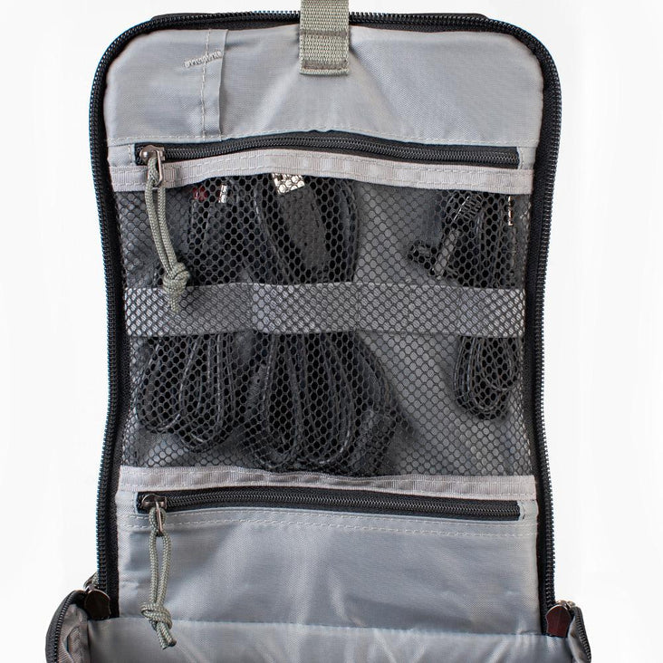 A size up from the Redfern, the Elkhorn pouch is designed to add that extra space for your essentials when on location. The mid-sized pouch also includes a hanger and several compartments for easy storage and accessibility.