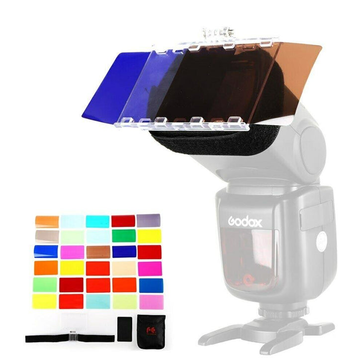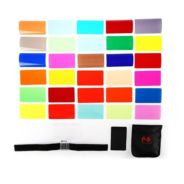 The Falcon Eyes Speedlite Colour Gel Kit CFA-30K easily attaches to your Godox, Nikon, Canon, Yognuo and many more traditional speedlite brands. The kit comes with 30 different colour gels which is great for those wanting to experiment with different background or accent colours.