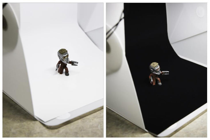 The Foldio2 / Foldio2 Plus backdrop set is composed of white/black/grey/green backdrops.