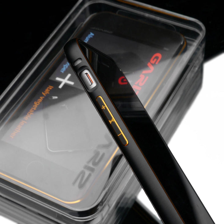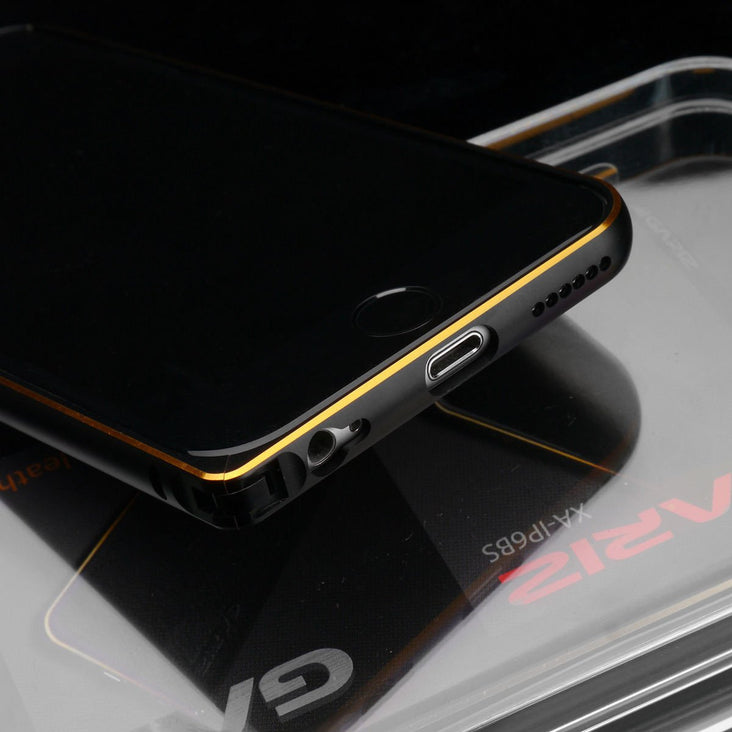 Gariz XA-IP6BS Metal Bumper Case Leather Skin for iPhone 6 6S Black Gold Trim
