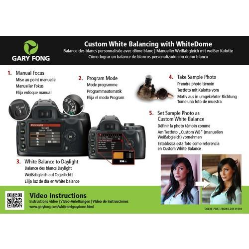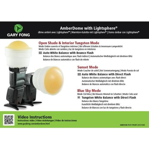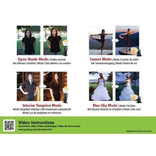 The WhiteDome provides general diffusion of your light source while the AmberDome provides a warming effect in addition to the general softening of your light source. Additionally, the included GrayDome can be used for color correction. By including the GrayDome in your shot you can use it to balance color in a photo-editing application.