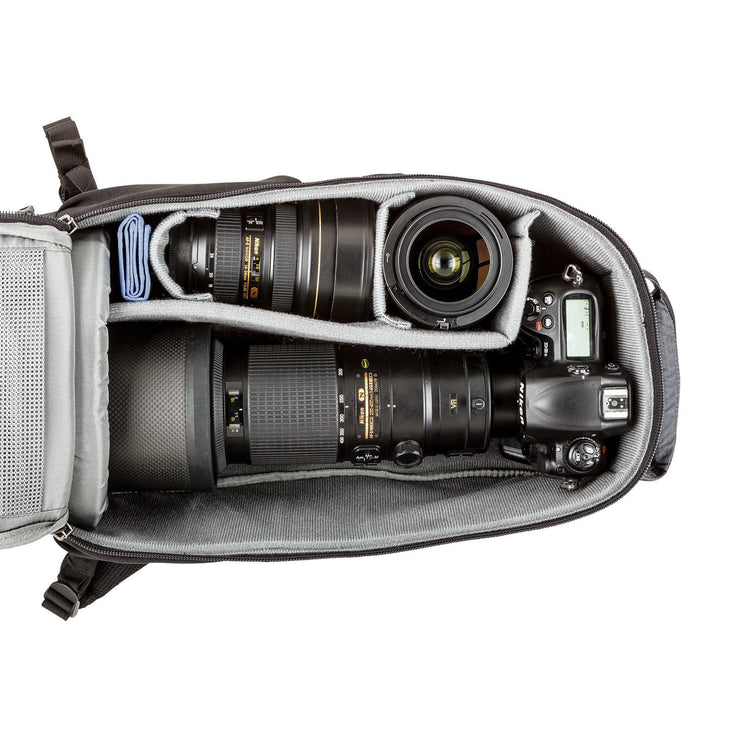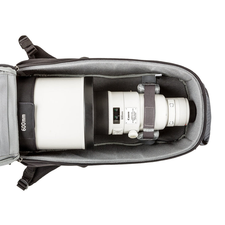 - Accommodates large glass or a medium-large sized kit of standard zoom lenses