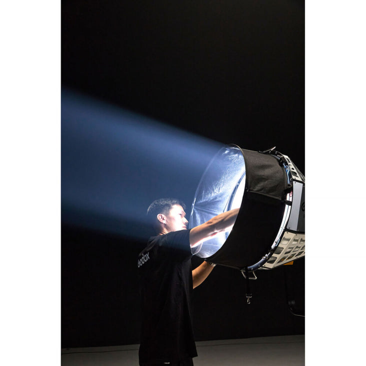 The BeamLight Max60's directional beam spread, coupled with its highly-reflective silver interior, intensifies the output of select Godox LED lights, which is useful for film and commercial productions.