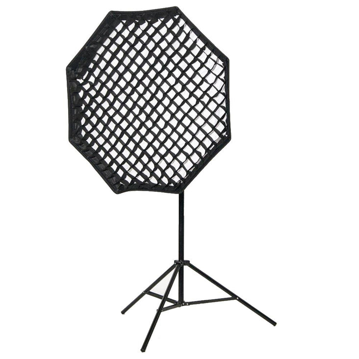 The Godox large Collapsible Octagon Softbox with Grid Light Modifier (Bowens) is designed to diffuse a strobe flash, giving you better even lighting. It comes with a silver reflective interior and a flush front face.