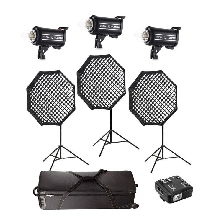 Godox 3x QT400IIM 400W (1200W) HSS Flash Strobe Complete Lighting Kit - Bundle