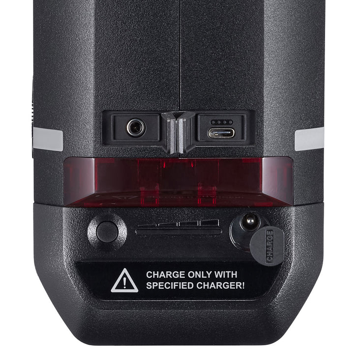 • Detachable 10.8V/8940mAh lithium battery provides up to 500 full-power flashes