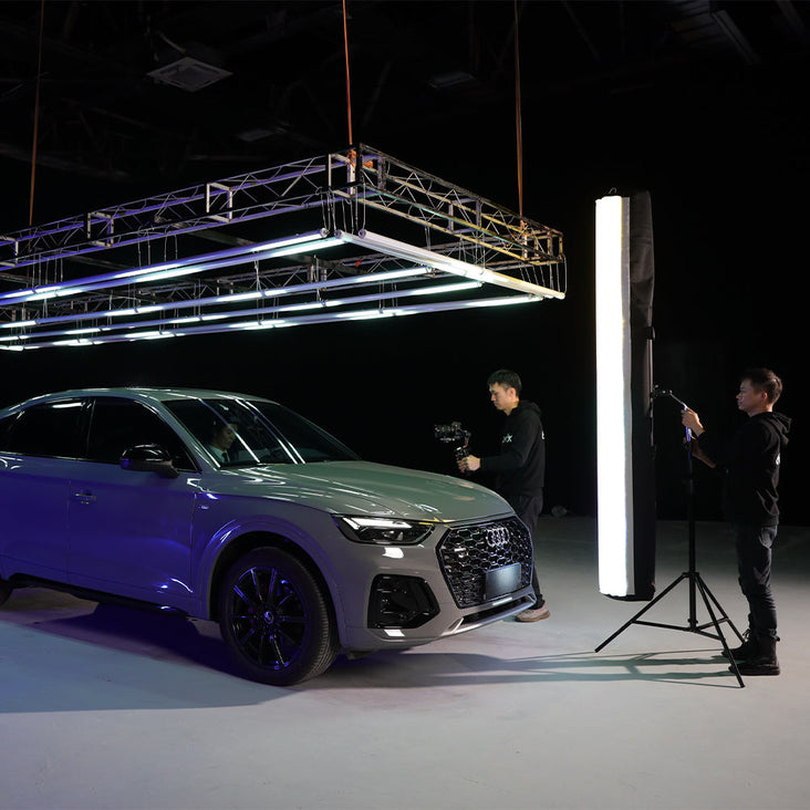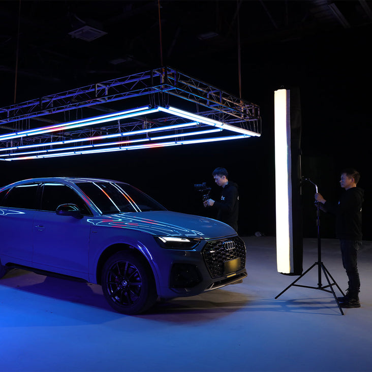 The lights come in three different sizes: 2', 4', and 8'. 2' lets you hide the lights around the scene easily. 4' enables you to create a variety of looks. 8' makes it easy to set up dramatic and impressive spaces.