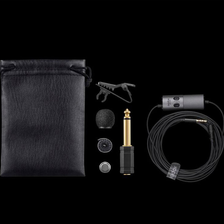 The LMS-60G Omnidirectional Lavalier Microphone from Godox is compatible with smartphones, DSLRs, camcorders, audio recorders Mac and Windows computers, and more. The omnidirectional pickup pattern is equipped with full, 360° coverage and the 19.7' cable terminates with a 3.5mm TRRS mini-jack plug.