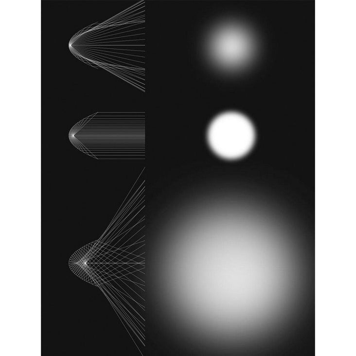 Let’s see what science is behind its magic light results—a geometric graph that defines any point on the curve at an equal distance from a focus and the directrix. Put that on the light system, the curve represents reflector, the axis of symmetry is where the focusing rod is with a light source as a point moving along on it to achieve a range of light qualities.
