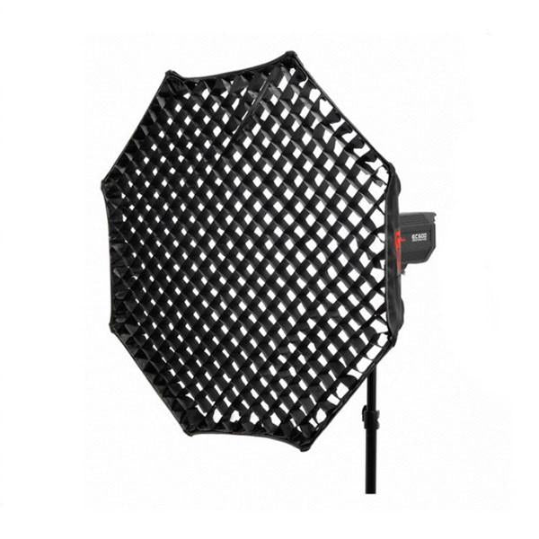 The Godox large Collapsible Octagon Softbox with Grid Light Modifier (Bowens) is designed to diffuse a strobe flash, giving you better even lighting. It comes with a silver reflective interior and a flush front face.