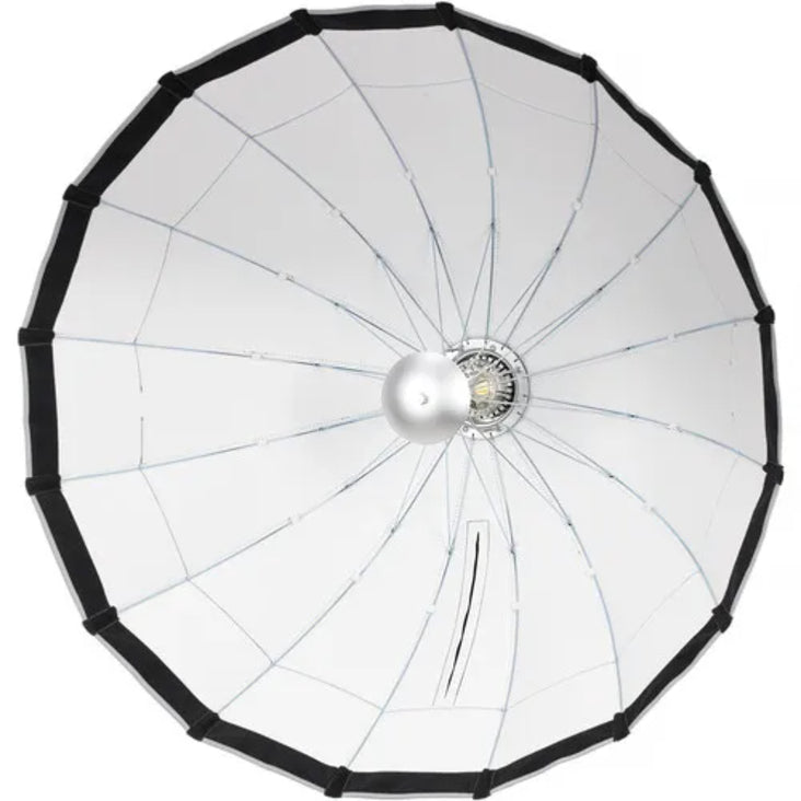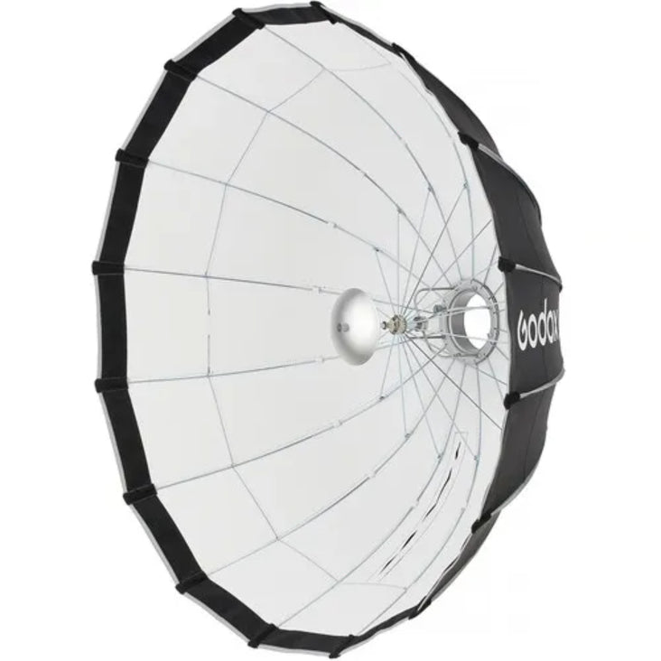The Godox 105cm Quick Release Umbrella Softbox with a white interior provides soft, even lighting for studio and on-the-go use. Its quick-release, collapsible design allows for fast setup and breakdown, while a zipper near the mount offers easy access without removing diffusers or optional accessories. The Bowens mount ensures broad compatibility with various lights.