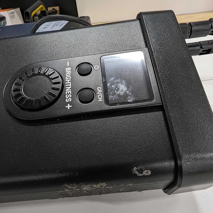 Please note this item is Demo Stock. It was ex-studio stock, wear and tear across all parts of the kit (Pictures 2-4). There is some glue/residue on the control module, as well as scratches all over the AC Power Brick. The unit is in full working condition. It's missing the original box.