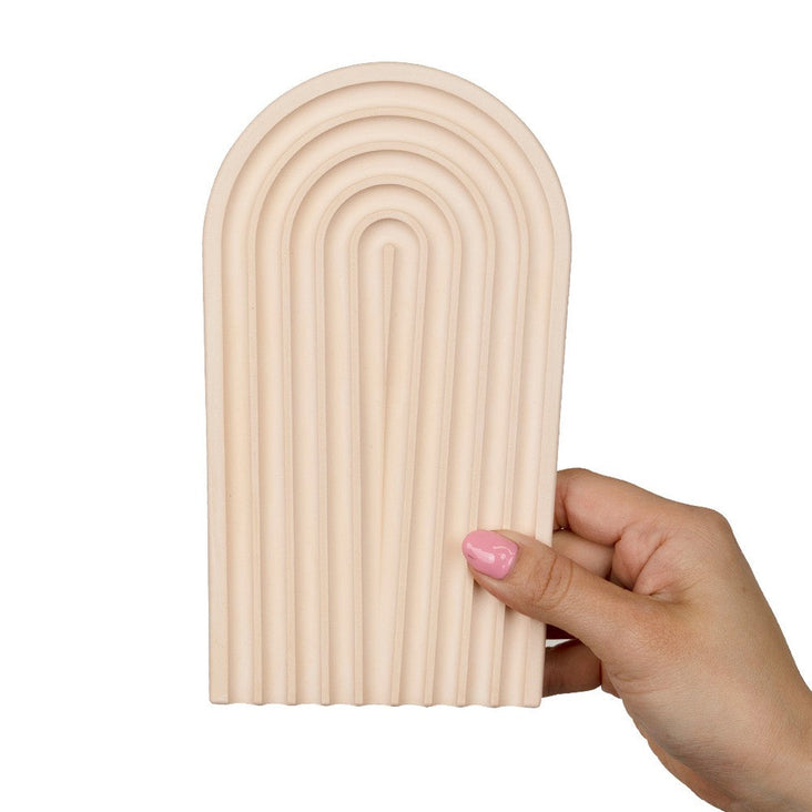 Introducing the latest must-have for any content creator - our handmade Grooved Arch Wave Photography Styling Handmade Plaster Props in Pastel Orange colour!