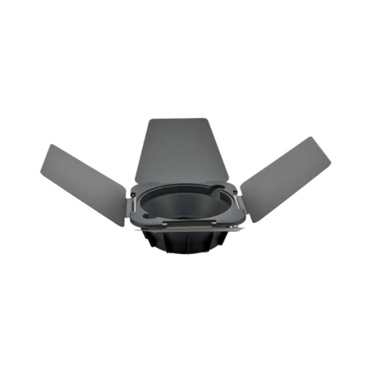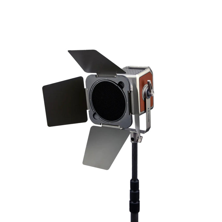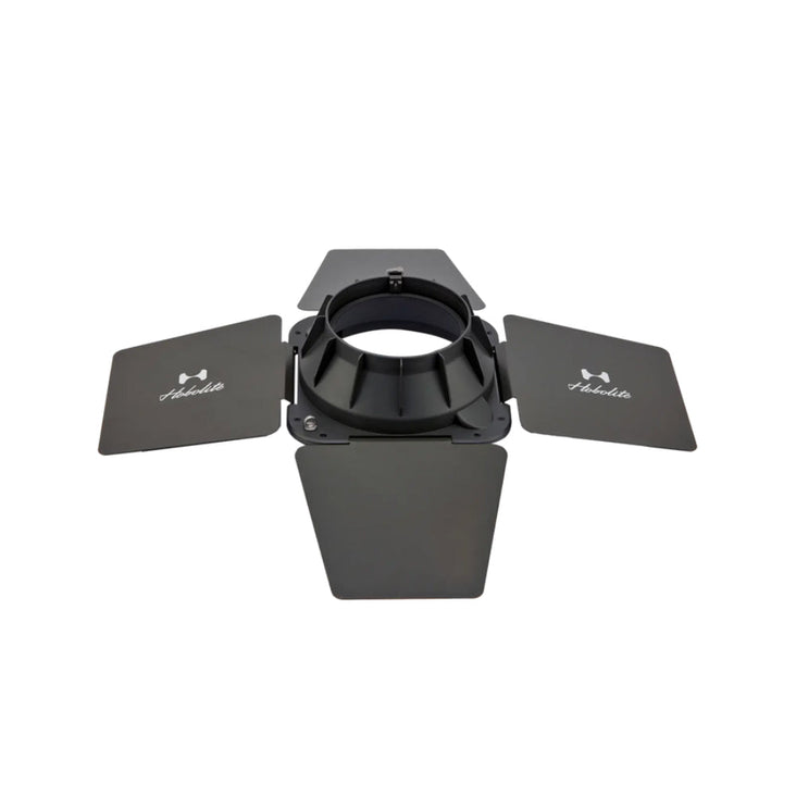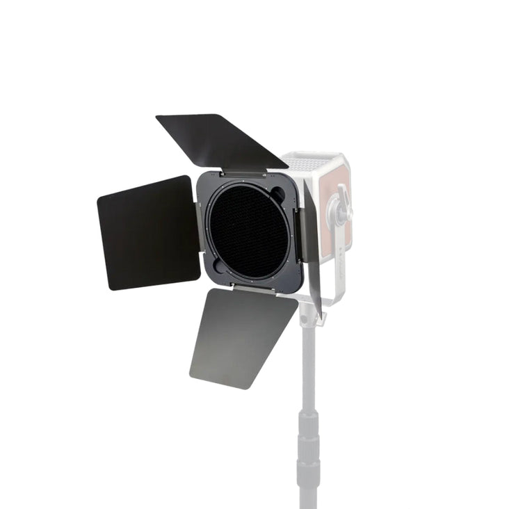 The Pro Barndoor is designed with a safety latch and a Honey Comb filter that attaches over the lens with a pressure mount. You can adjust the four doors to control the amount of light spread from the fixture.