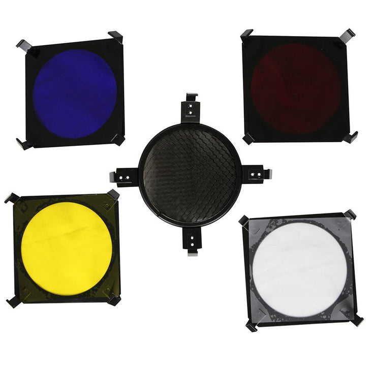 This 4-leaf metal barn door set comes with honeycomb grid and also 3 colour gel panels. You can simply adjust the doors to suit your lighting direction or use the colour gel to create the special lighting effects.