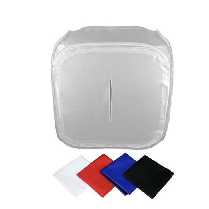 Our 80cm x 80cm x 80cm photography tent is perfect for a wide range of product photography. Included is 4 different coloured backdrops (white, red, blue and black), which allows for greater versatility and creating edgier photos or videos with different effects.