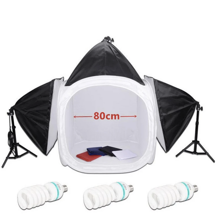 Introducing the 31" tent 'KONTENT KUBE' lighting kit suitable for use for photographers and videographers of all levels. From amateurs to professionals, the Professional 'KONTENT KUBE' lighting tent kit is perfectly suited for taking perfect product catalogue shots. Ideal for use for small businesses and eBay sellers.