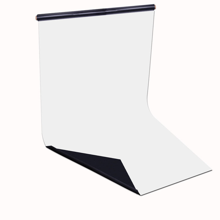The Hypop double sided black & white vinyl studio photography backdrop measures a large 2.7m (width) x 6m (length). It features a high key white background which can be reversed to its low key black backdrop - perfect for acheiving those professional background finishes.