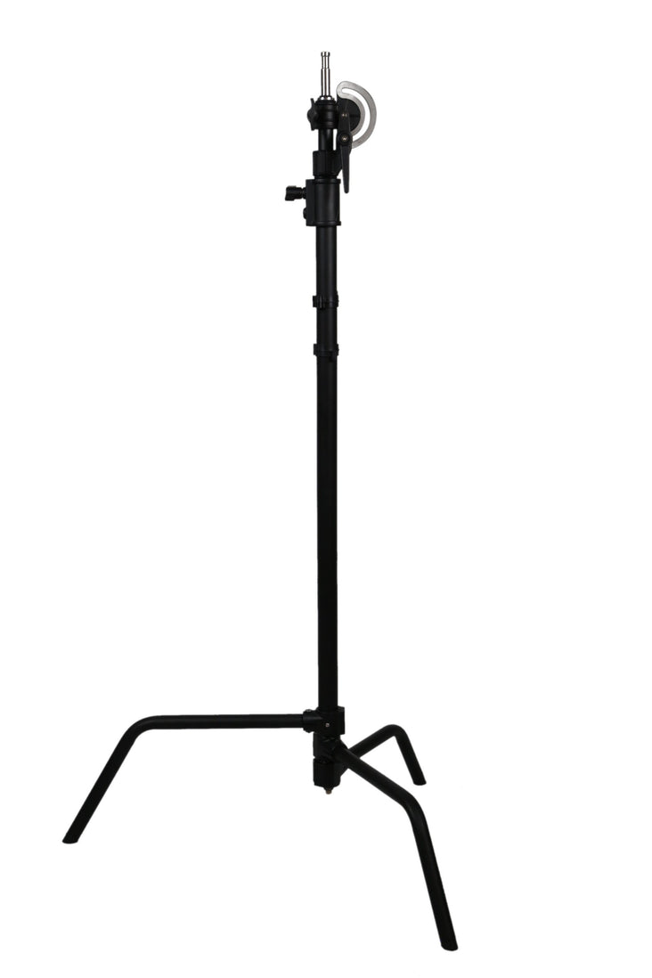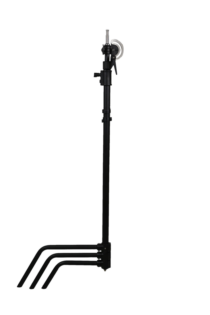 The C stand is stable due to its build and placement of the legs, and can hold up to 20kg of weight. The height of the stand is fully adjustable as well as the length of the boom arm.
