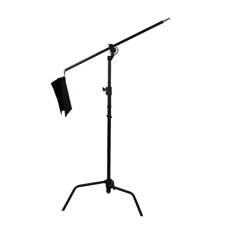 Heavy Duty Photographic C-Stand With Boom Arm For Accessories Attachment is perfect for suspending large and heavy lights, and comes with a weight bag which can be filled with sand as a counter weight.