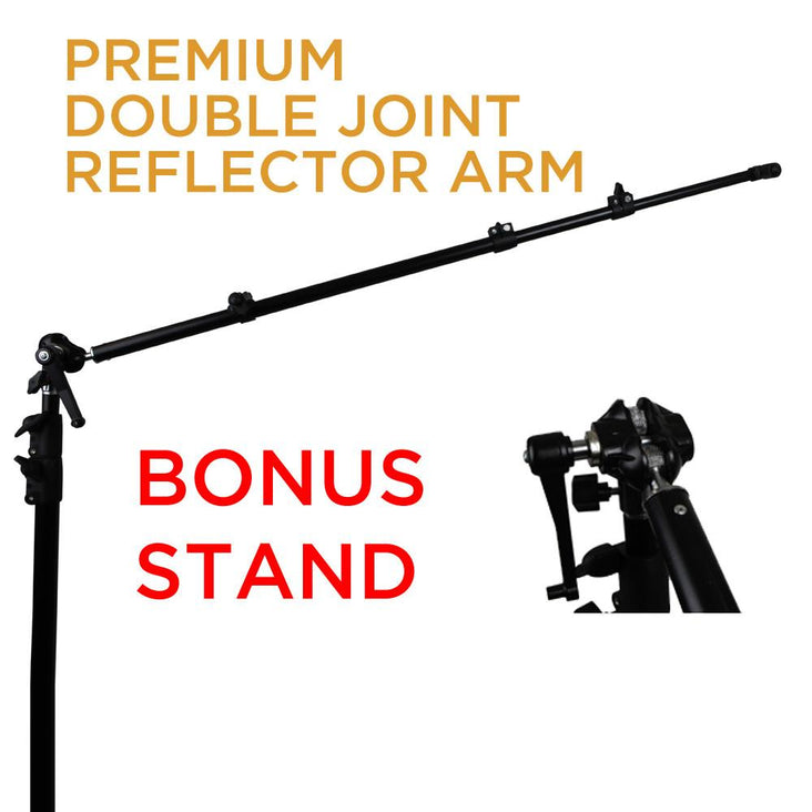 Introducing Hypop.com's exclusive range of Professional Studio Equipment suitable for use for photographers and videographers of all levels. From amateurs to professionals, the Professional Photography Studio Reflector Boom Arm Kit assists in providing the perfect stand for professional product catalogue, glamour and model photos or videos. The best thing about a double joint ball head is that you are able to get the most versatile angles with your reflector disc.