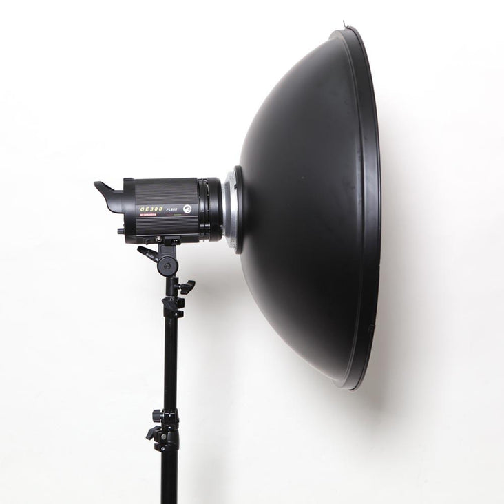 This Beauty Dish is perfect for lighting portraits; it offers a dramatic light that wraps around your subject's face, providing a classic look to your portraiture photography.