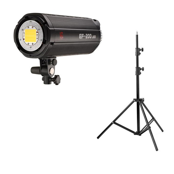 The Jinbei EF-200 V sunlight is a robust silent running continuous LED light. The EF series is ideal for both photography and videography. It uses a multi LED lamps with high colour rendering. Its aluminium alloy construction is familiar with the shape of traditional monoblock studio flashes. With an integrated design of housing and radiator and a high tech single SMD LED chip, this decreases the operational temperature – ensuring prolonged usage.