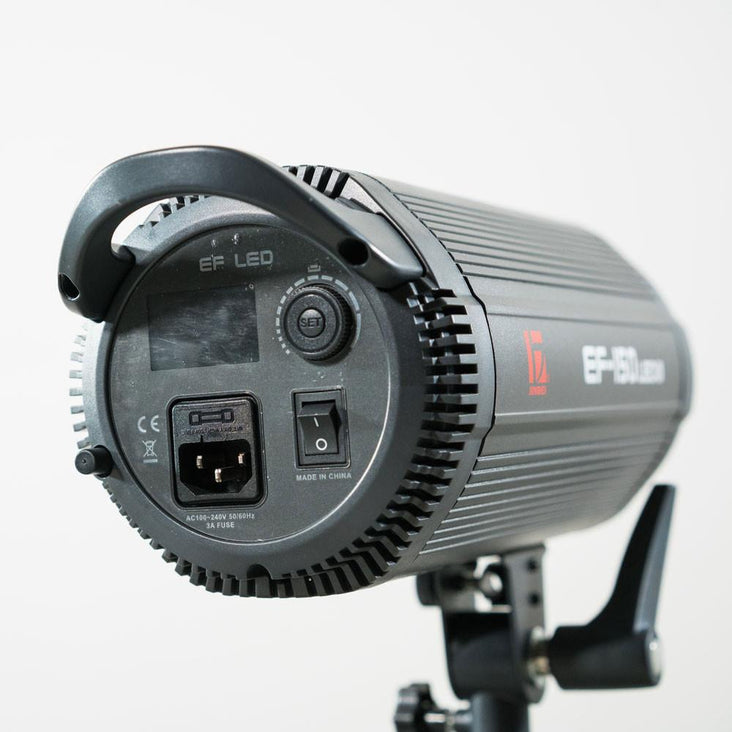 The Jinbei EF-150 sunlight is a robust silent running continuous LED light. The EF series is ideal for both photography and videography. It uses multi LED lamps with high colour rendering. Its aluminium alloy construction is familiar with the shape of traditional monobloc studio flashes. With an integrated design of housing and radiator and a high tech single SMD LED chip, this decreases the operational temperature – ensuring prolonged usage.