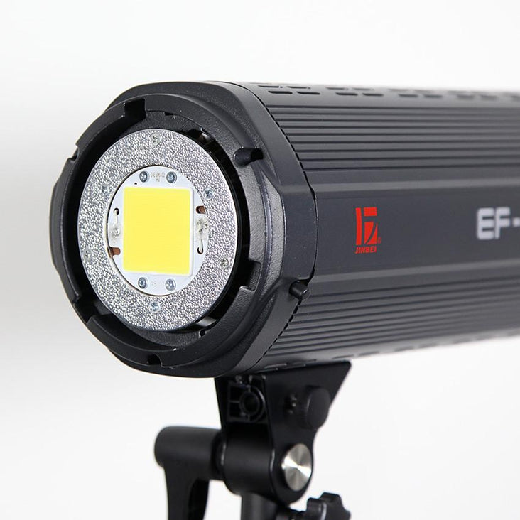The Jinbei EF-200V sunlight is a robust silent running continuous LED light. The EF series is ideal for both photography and videography. It uses multi LED lamps with high colour rendering. Its aluminium alloy construction is familiar with the shape of traditional monobloc studio flashes. With an integrated design of housing and radiator and a high tech single SMD LED chip, this decreases the operational temperature – ensuring prolonged usage.