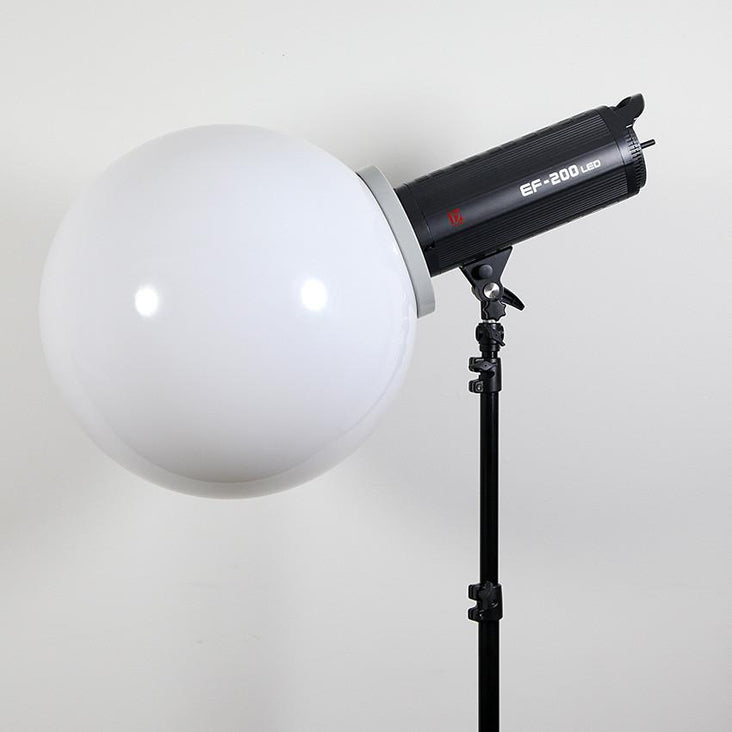 The large 50cm Jinbei softball is an ivory white, light modifier. It emulates the effect of the sun, perfect for natural looking light with a direct softness, as well as offering reflected light off surfaces within the room. The softball features a Bowens S Mount. Perfect for Portraiture, Baby Photography, Filming etc.