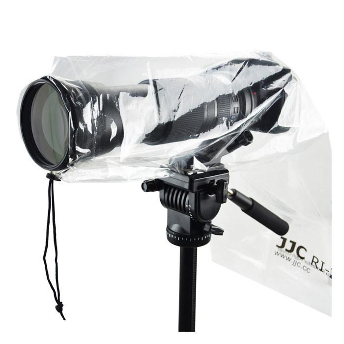 The JJC RI-5 Camera Rain Cover is designed to protect your camera from rain, dust and mud effectively when shooting on rainy days. The cover is suitable for DSLR cameras with a lens up to 18" (45cm). It's made from a PE material and is transparent, which gives you complete access to your DSLR's controls and viewfinder. It's easy to mount and secure with the use of the lens sleeve drawstring. It also allows you to attach your camera onto a tripod. With the cover on, you can still use a lens hood. The cover is foldable, lightweight and easy to carry.