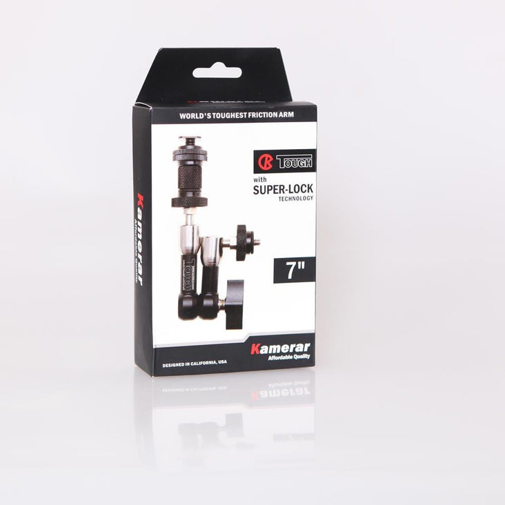 The KAMERAR 'TOUGH' Friction Magic Arm was exclusively designed from the ground up. Every section of the 'Tough' Arms were improved over other existing arms on the market. The stainless steel accents and black anodized finish provide both a professional aesthetic and an extremely long lasting durable finish.