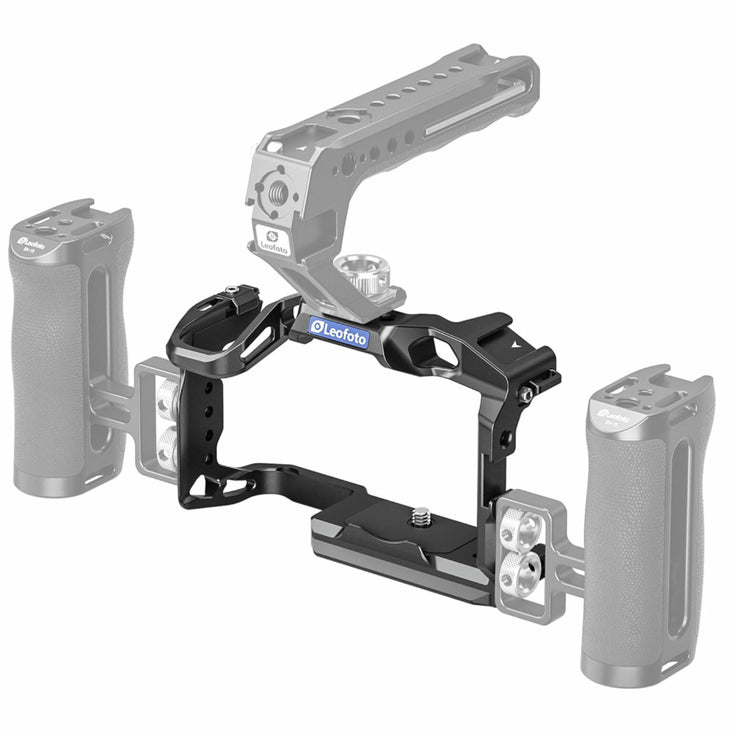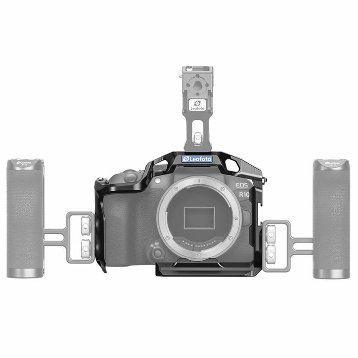 The Leofoto EOS-R10 Camera Cage is specifically designed to provide robust protection and extensive versatility for your Canon EOS R10 camera. Expertly crafted from 6061-T6 aluminium alloy, this cage offers a lightweight yet durable solution that enhances your camera's usability without compromising its core functions.
