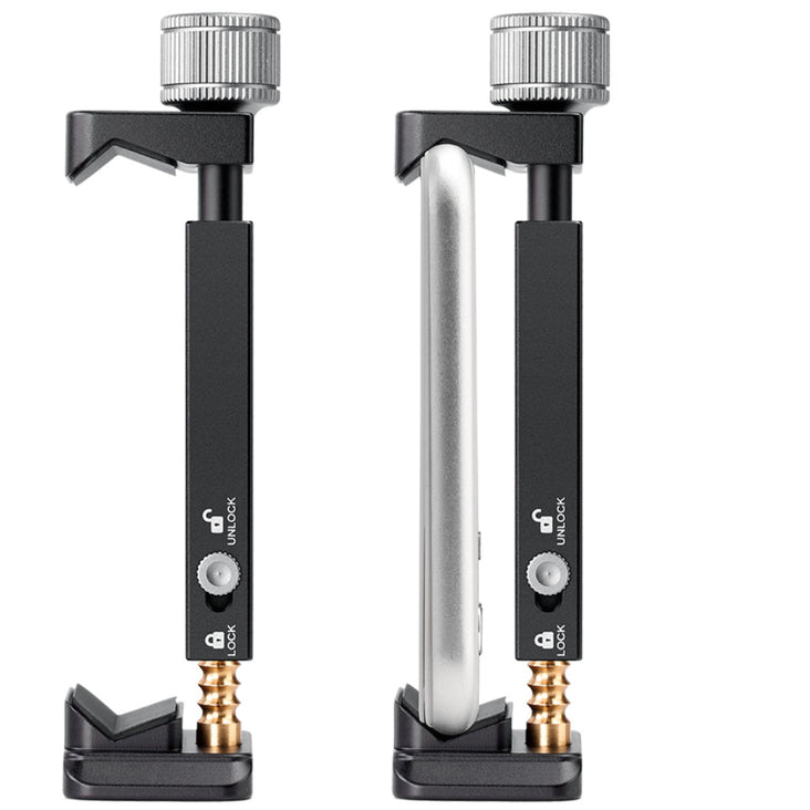 The width adjustment button and locking knob ensure your smartphone stays firmly in place, even during intense shooting sessions. This design minimises the risk of your phone slipping or falling out of the clamp.