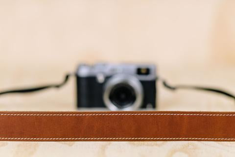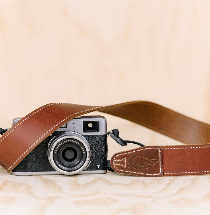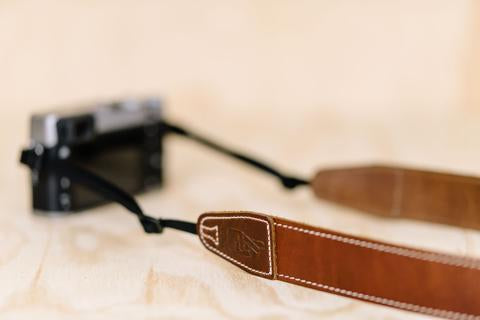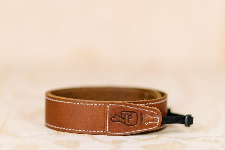 Lucky Straps Simple 40 Leather Camera Strap - Natural Brown with White Stitching