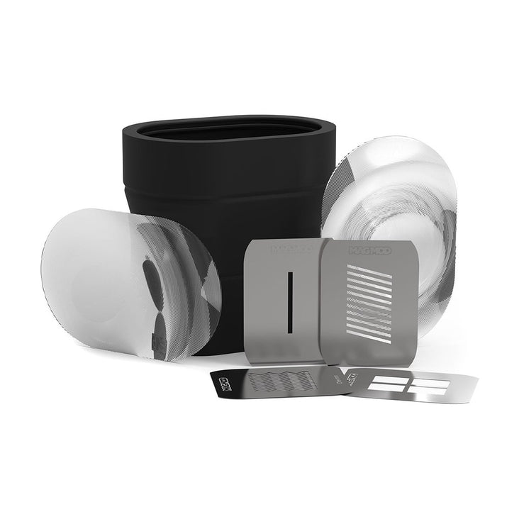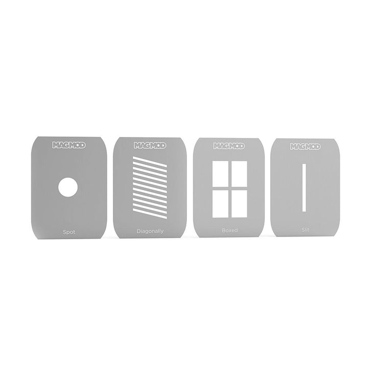 Create fantastic patterns with your flash by placing a stainless steel MagMask from this MagMod Standard Set into the integrated gel slot of your MagBeam modifier. This set includes four distinct patterns, including spot, diagonally, boxed, and slit.