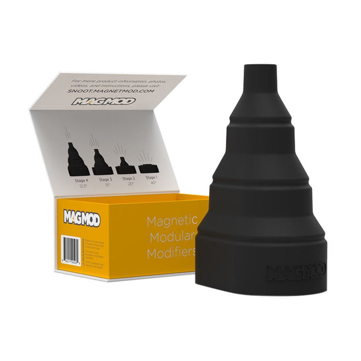 Restrict the area your speedlight illuminates with the MagSnoot, designed for use with the MagMod flash modifier system. It narrows the flash beam and with a collapsible design allows users to produce four different beam patterns. This accessory also has an integrated gel slot that can hold up to 2 gels for additional light modification. It attaches to the separately available MagGrip and its accessories via two neodymium rare-earth magnets. Additionally, it is made from molded silicone rubber for a sleek, simple design with good durability and comes with a carrying pouch.