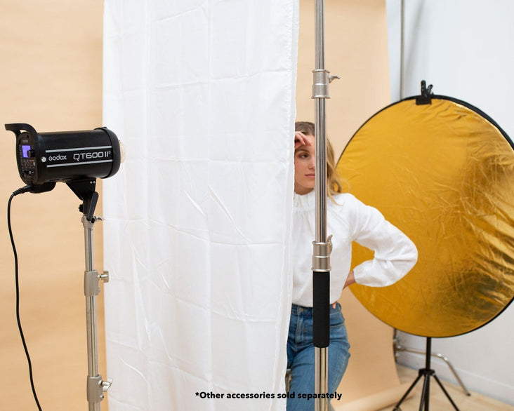 The Medium White Photography Light Diffusion Sheet is perfect for creating a DIY lighting modifier/softbox, light tent or as a large scale scrim. The fabric is coated with a non-yellowing white nylon translucent textile which makes it ideal for large scale diffusion and DIY lighting tents and modifiers.