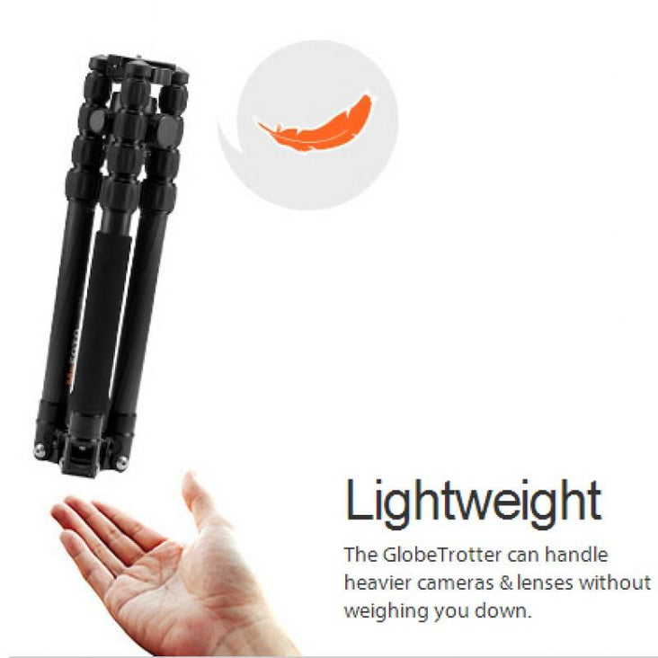 The MeFoto GlobeTrotter Carbon Fiber Travel Tripod Kit offers a sturdy, compact tripod that extends to 64.2", supports up to 26.4 lb, and folds down to just over 16". The GlobeTrotter is actually two camera supports in one: a foam-cushioned, removable leg attaches to the center column to convert to full size monopod.