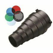 This Metz Snoot Kit is tailored to fit Metz or other branded lighting units fitted with an 18cm reflector. A snoot results in a narrow and highly controllable light source. Further effects can be obtained by utilising the included honeycomb grid and four coloured filters.