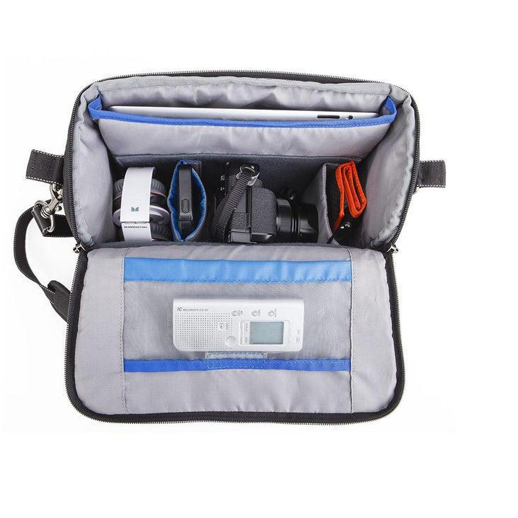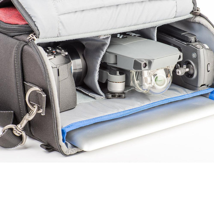 - Designed from the ground up for a mirrorless 3–lens kit with a dedicated pocket for a 10” tablet