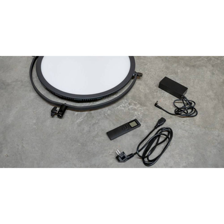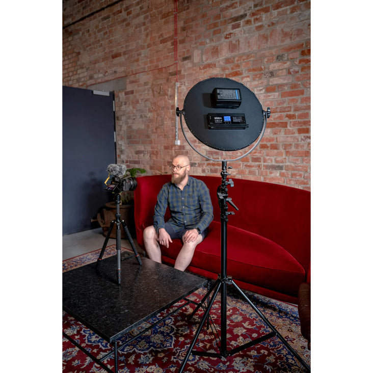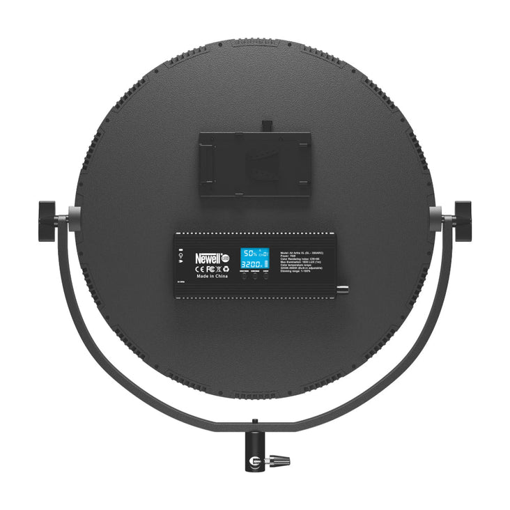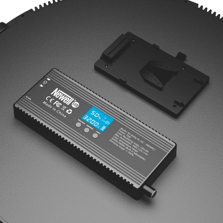 The Newell Air Artha XL LED light is an ideal choice for photographers and filmmakers searching for a powerful light source with a large footprint and a round shape. Its adjustable colour temperature and power make it easy to control the exact amount of light needed for your scene, and its built-in diffuser provides the soft light filmmakers desire. Supporting popular V-Mount batteries used in the film industry, the light can be operated wirelessly. Plus, it comes with a remote control with built-in screen for convenient operation.
