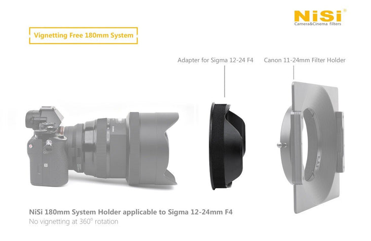 This adaptor ring MUST be used with the NiSi 180mm Filter Holder for the Canon 11-24mm to allow the NiSi 180mm filter system to be used with the Sigma 12-24mm f/4 HSM Art Series lens.