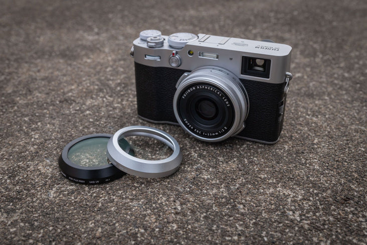 The original X100V lens cap (only the X100V lens cap) can be used with the NiSi UHD UV for Fujifilm X100 and can be placed over the filter for protection.