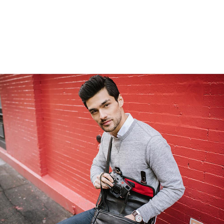 Designed to hold a Leica M-System camera or another model of similar size, along with up to 3 lenses and a tablet, the ONA Berlin II Camera Messenger Bag in black was created in celebration of Leica's 100-year anniversary. It's handcrafted from full-grain leather and features a fully customizable interior with dividers that create separate compartments for your gear. The interior is made of padded closed-cell foam and is a striking shade of red in honor of Leica's signature look and style.