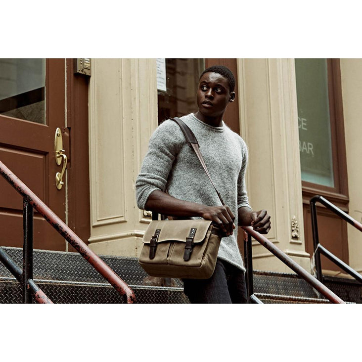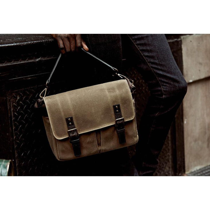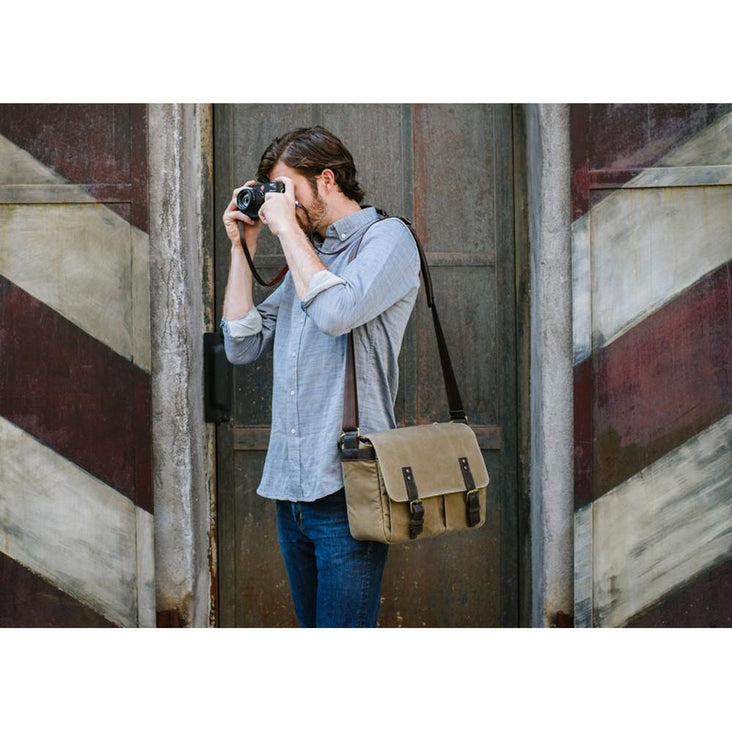Whether shooting for business or pleasure, the ONA Prince Street Camera and Laptop Messenger Bag - Field Tan delivers on style and function. Handcrafted with our signature waxed canvas and detailed with full-grain leather, the Prince Street comfortably accommodates an 11-inch laptop or tablet, a camera, up to two lenses and small personal items. A slim removable top-grab handle and a streamlined back pocket offer additional convenience and style. Note: Camera, Lens, Tablet and Laptop are not included.