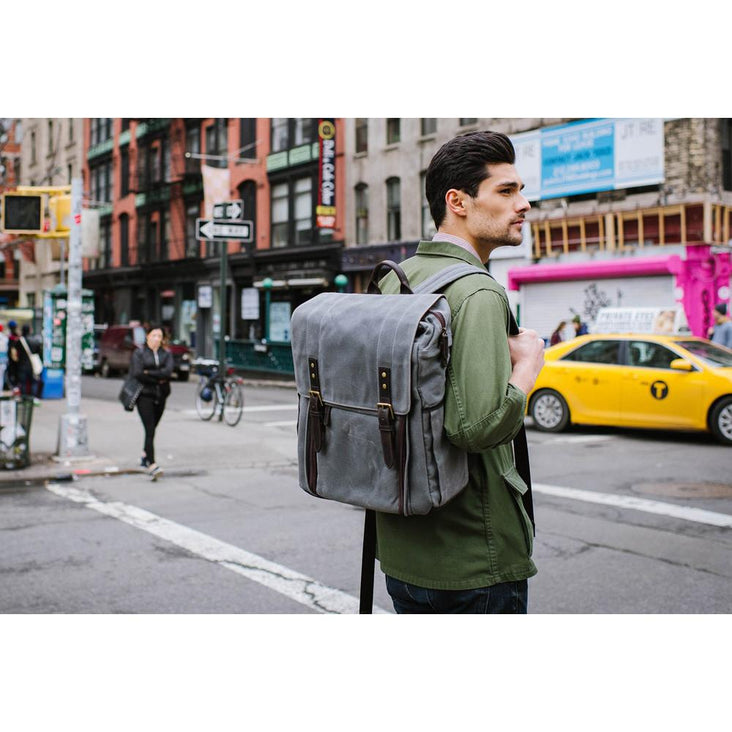 - Handcrafted with waxed canvas and leather